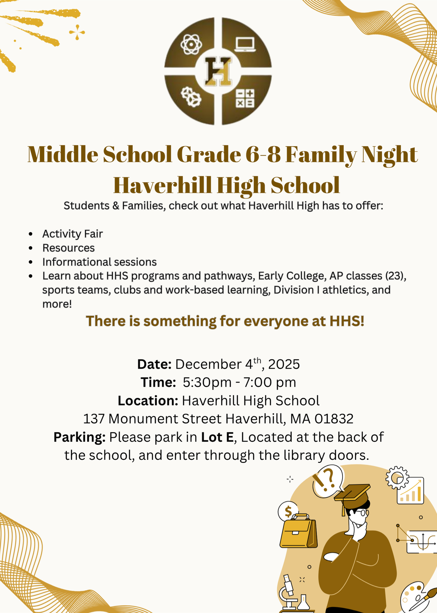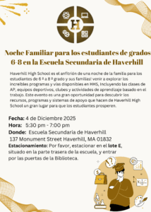 - Grades 6-8 Families! December 4th is family night at HHS from 5:30-7:00 p.m.