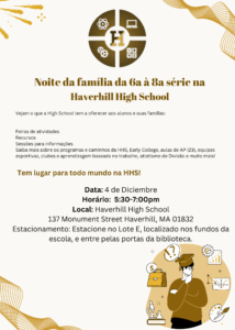 Homework Help: Drop in homework support is being offered Wednesday mornings from 8:00am – 8:30am starting December 3rd in the library with Mrs. Corcoran. You must provide transportation. If you have any questions, please email tcorcoran@haverhill-ps.org.