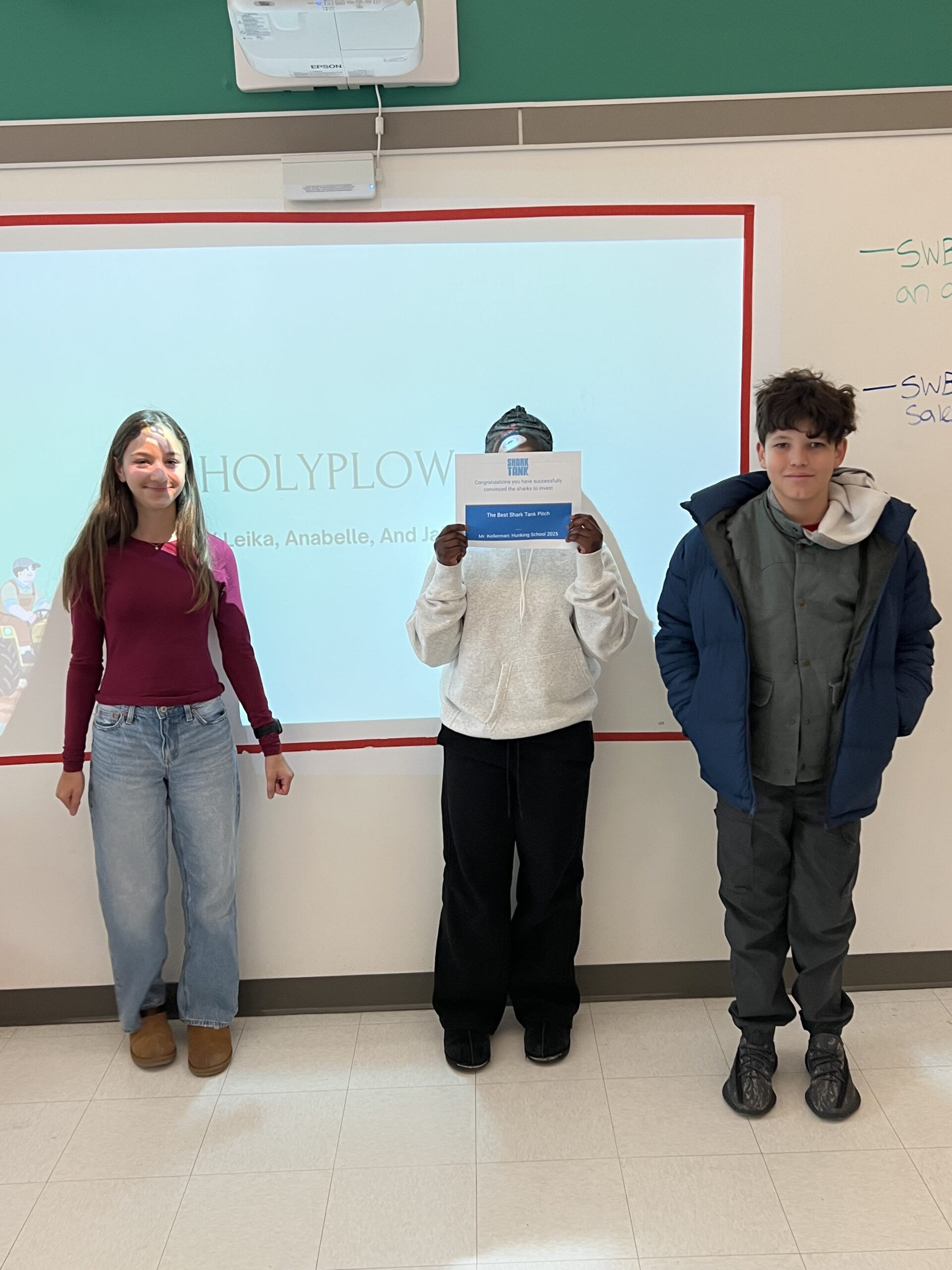 Grade 7: In SS, students all presented their group projects to some shark investors. The students did a fantastic job with their sales pitch. Here are a few photos of some of the winning teams.