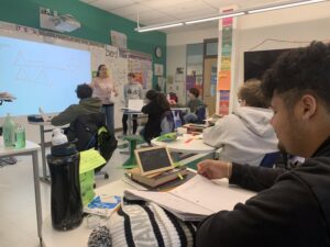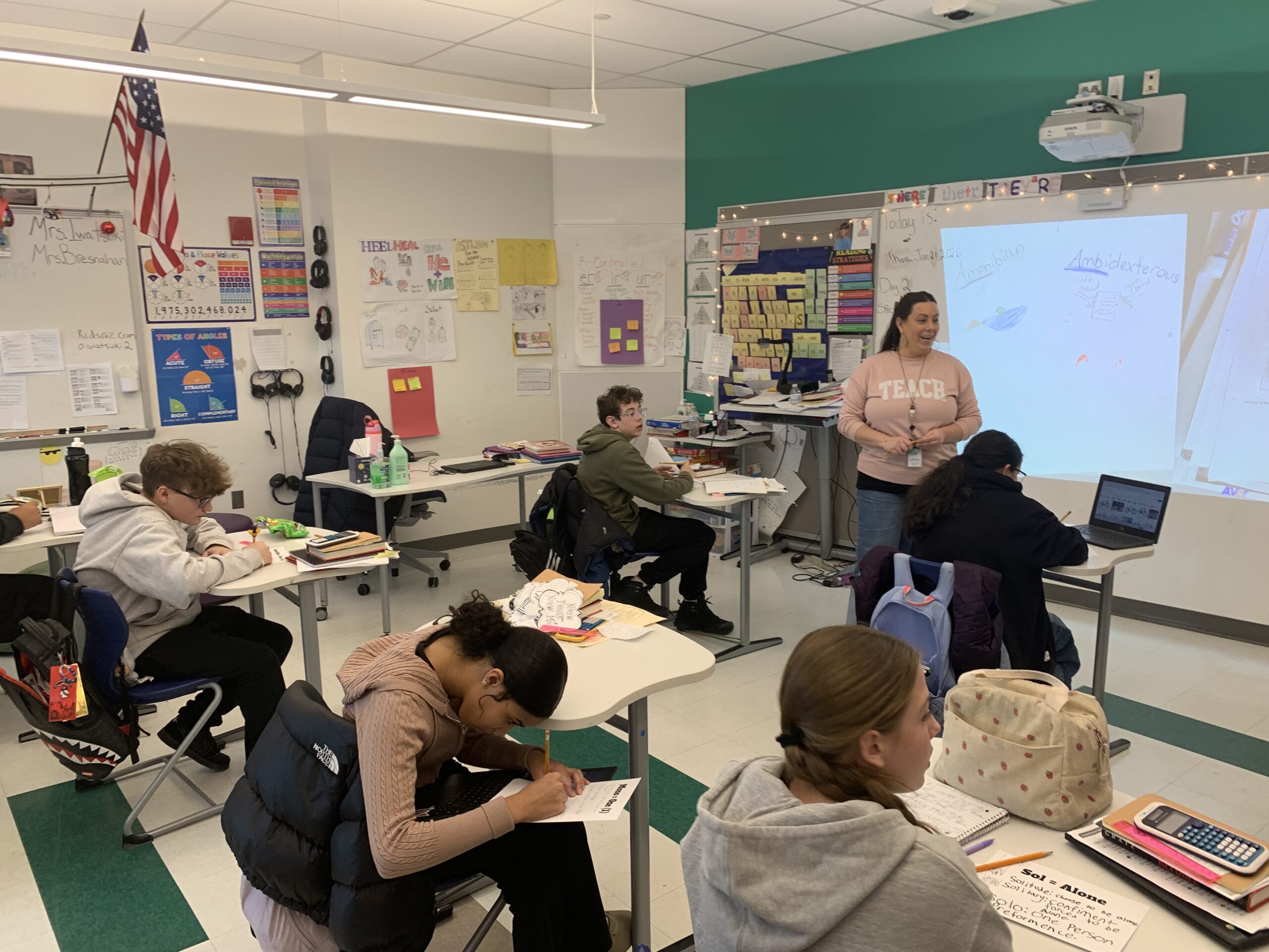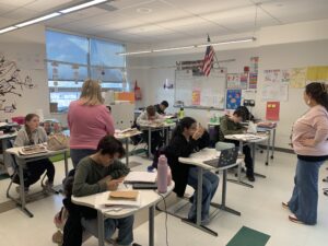 Students in Mrs. Iwatsuki’s ELA class working on Greek and Latin roots and expanding sentences.
