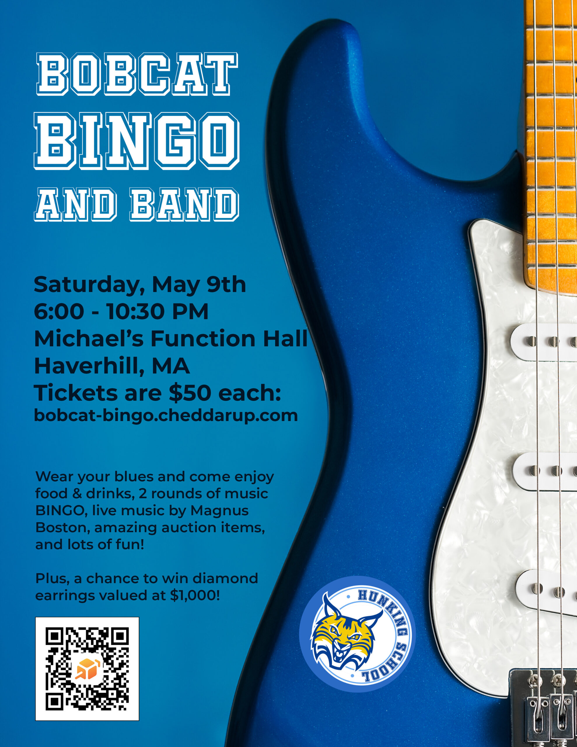 Grab your favorite blue outfit, gather friends and get ready for a fun adult only night out to raise money for Hunking School. Tickets can be purchased here https://my.cheddarup.com/c/bobcat-bingo/items
