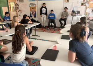 HEALTH: Ms Curry invited some 8th grade students to speak to her 5th grade health class about peer pressure and the negative impacts from vaping. Students explained some of the dangers of vaping and how important it is to stay strong when dealing with peer pressure and friends who may try to get you to vape. Students who spoke were Dinis and Matheus Pacheco and Noah Peralta.